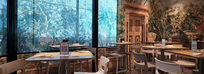 他們有幾個用餐區,所有用餐區都裝飾精美,有鬱鬱蔥蔥的綠色植物和舒適的座椅。然而,我們最喜歡的是玻璃屋,它會讓你感覺就像在室內花園裡吃飯。