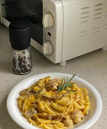 Tips:怕意麵太乾可以多留一點水,出鍋後撒點帕瑪森芝士碎,瞬間升級西餐廳同款,熱量卻只有外賣的一半。