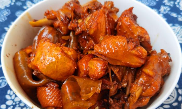 燉雞這道菜,平時我們一般都說得比較籠統。把紅燒雞塊、黃燜雞、煲雞湯等,都統稱為“燉雞”。其實,燉雞說的應該就是紅燒雞塊。我們從小就喜歡吃我媽媽做的燉雞,我家親戚朋友也都喜歡吃。當年,我媽也是全憑這燉雞的手藝征服了我爸,現在我媽又用這一手藝牽住了女婿和兒媳婦的胃。