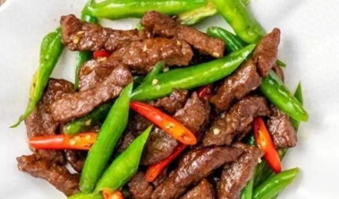 牛裡脊 250克、杭椒、小米辣合計200克、生抽、老抽、蠔油各10毫升、白砂糖5克、小蘇打、澱粉少許、安記黑胡椒粉3克